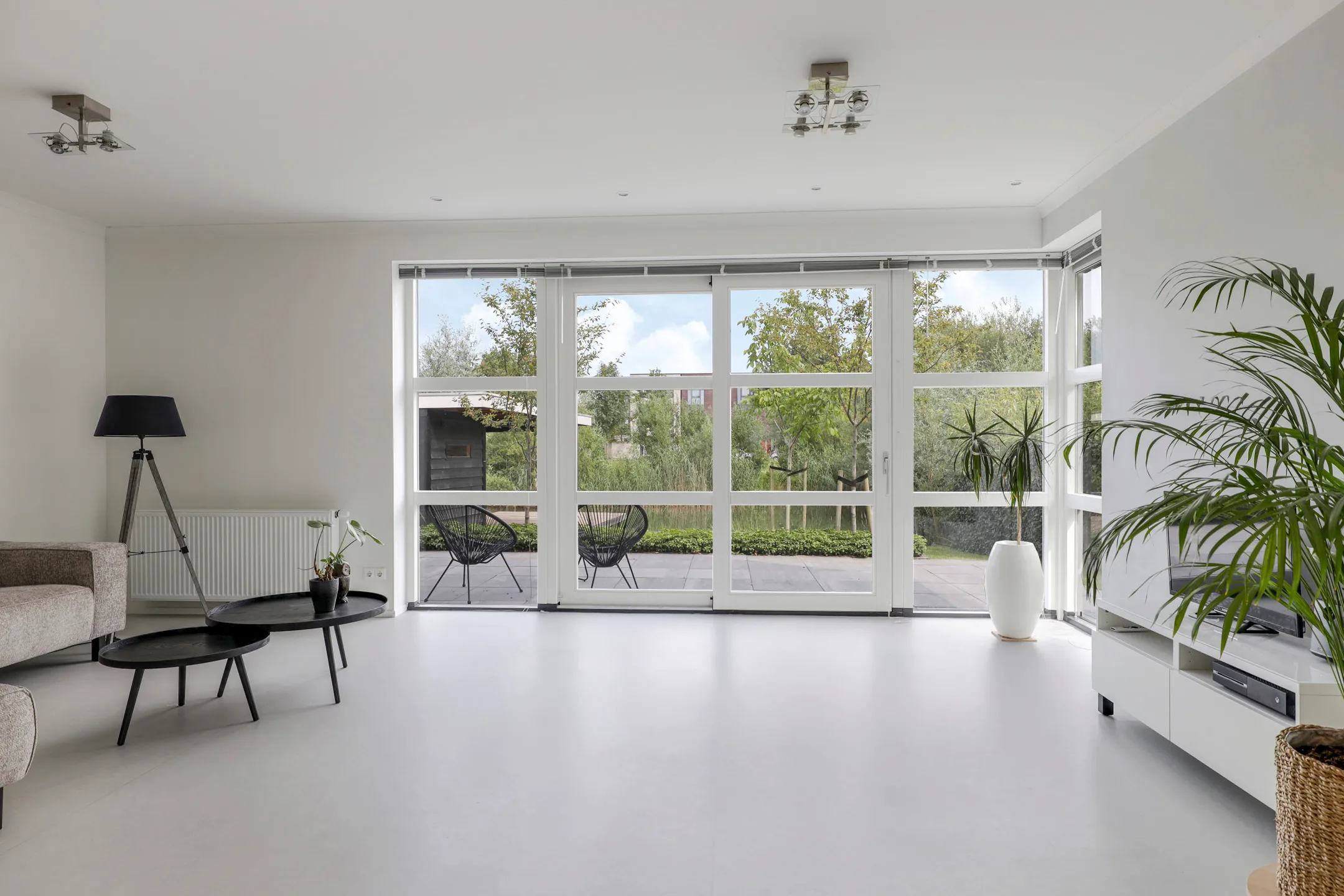 The existing sliding door was reinstalled in the new rear façade and complemented with a new exterior window. Wall ventilation was integrated into the left side wall to support a healthy indoor climate. The existing curtains were relocated and adapted to fit the new layout.
