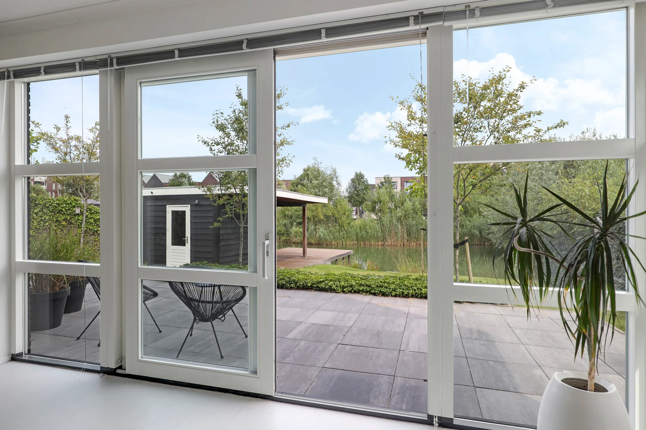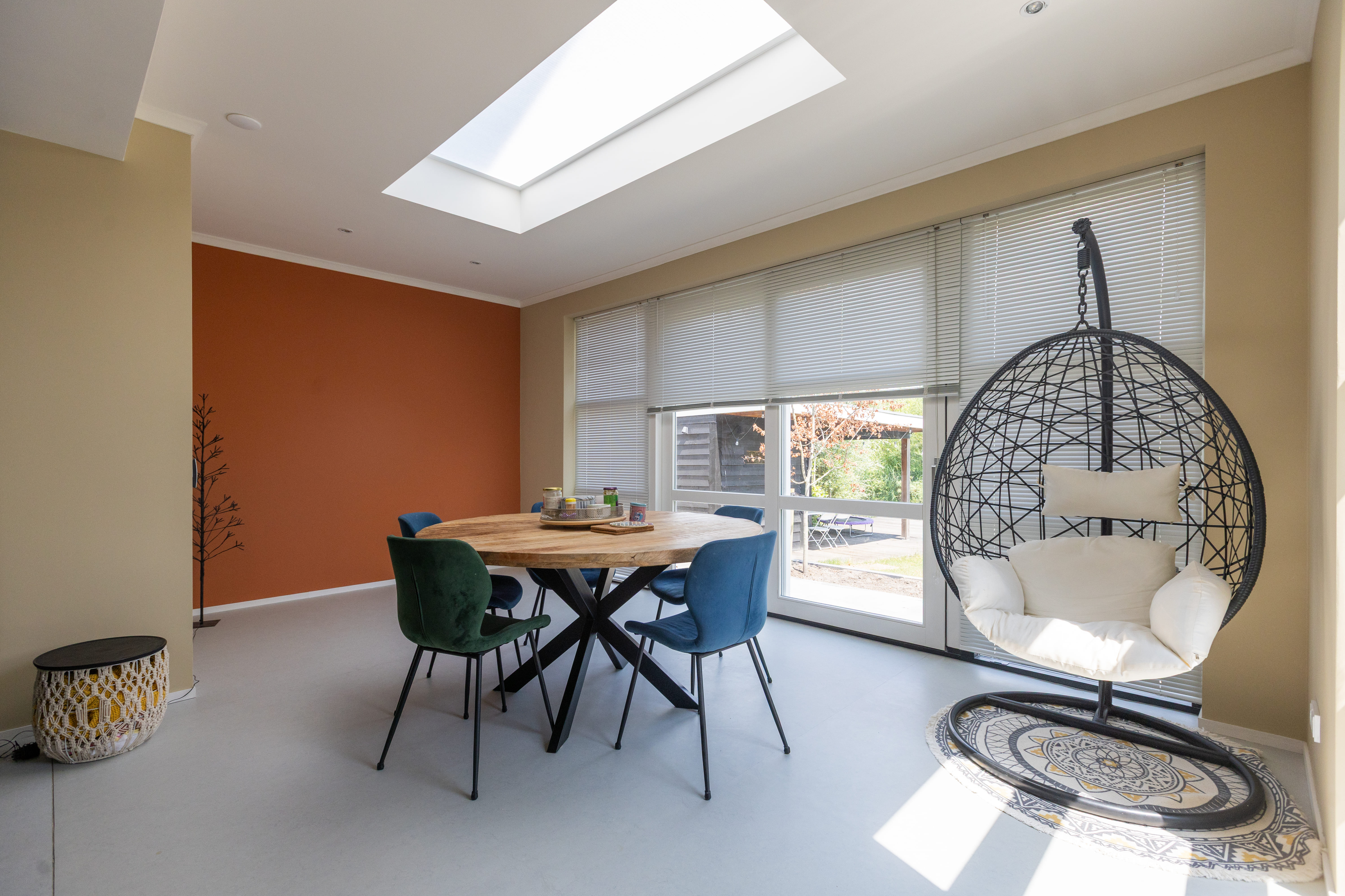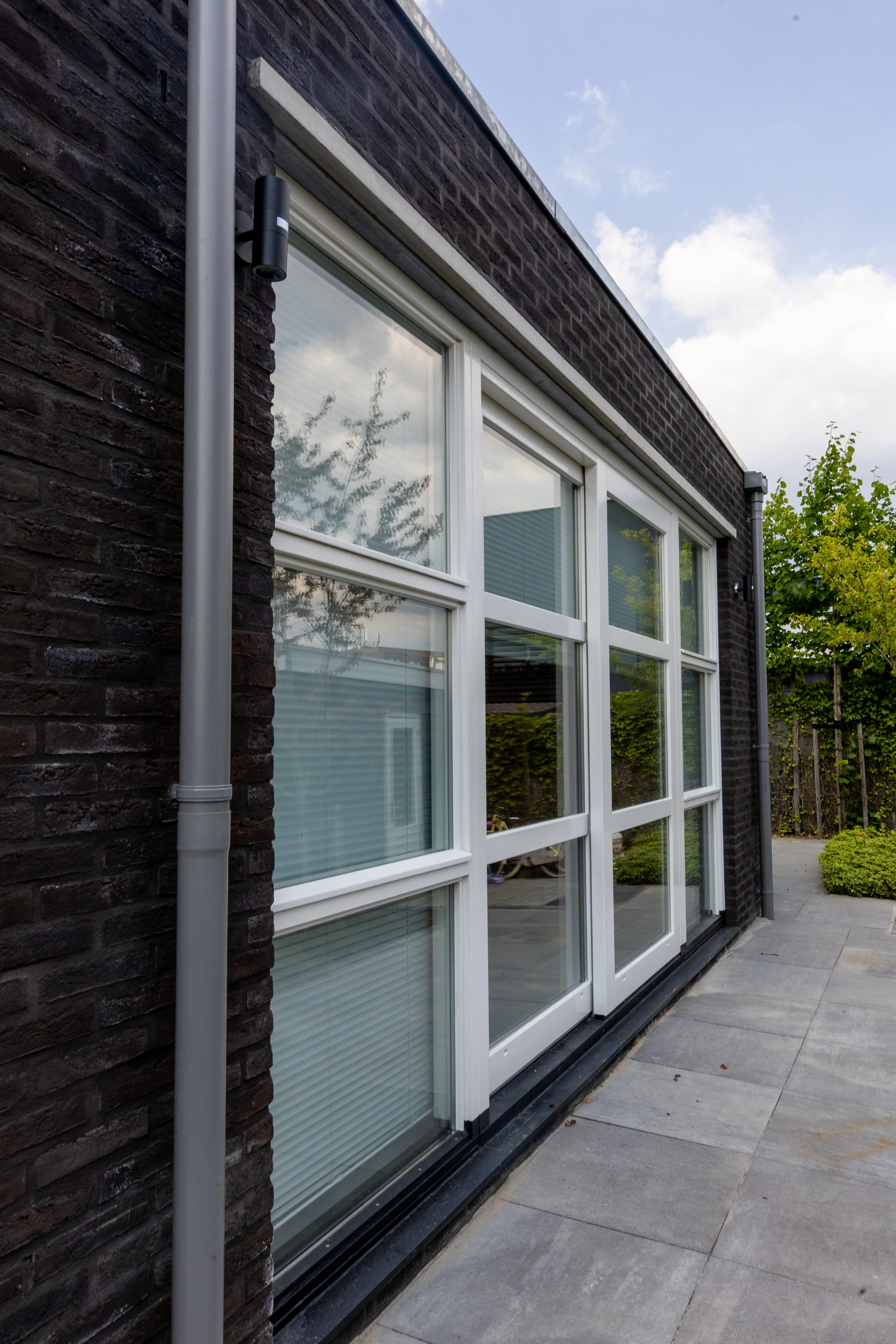 In Arnhem, we built a backyard extension that enlarges the living area on the ground floor and connects it more directly to the garden. The new shell is highly insulated, rests on a solid foundation with piles and foundation beams, and brings in extra daylight through a large fixed skylight. Existing elements—such as the sliding doors—have been reused where possible.