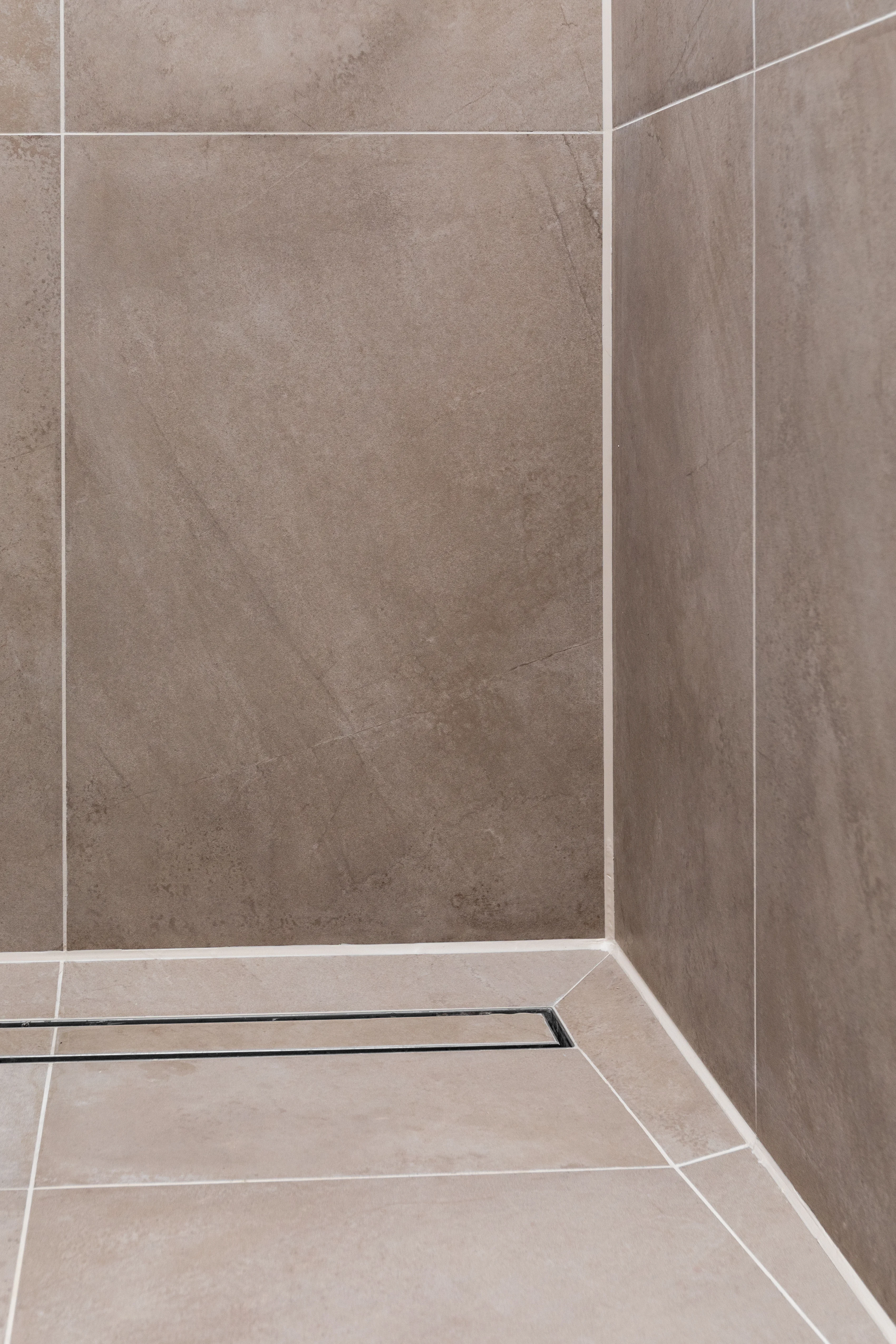 The wet zone is completely watertight: liquid/seal systems on the floor and walls (27 m²), with attention to corners, penetrations and connections.