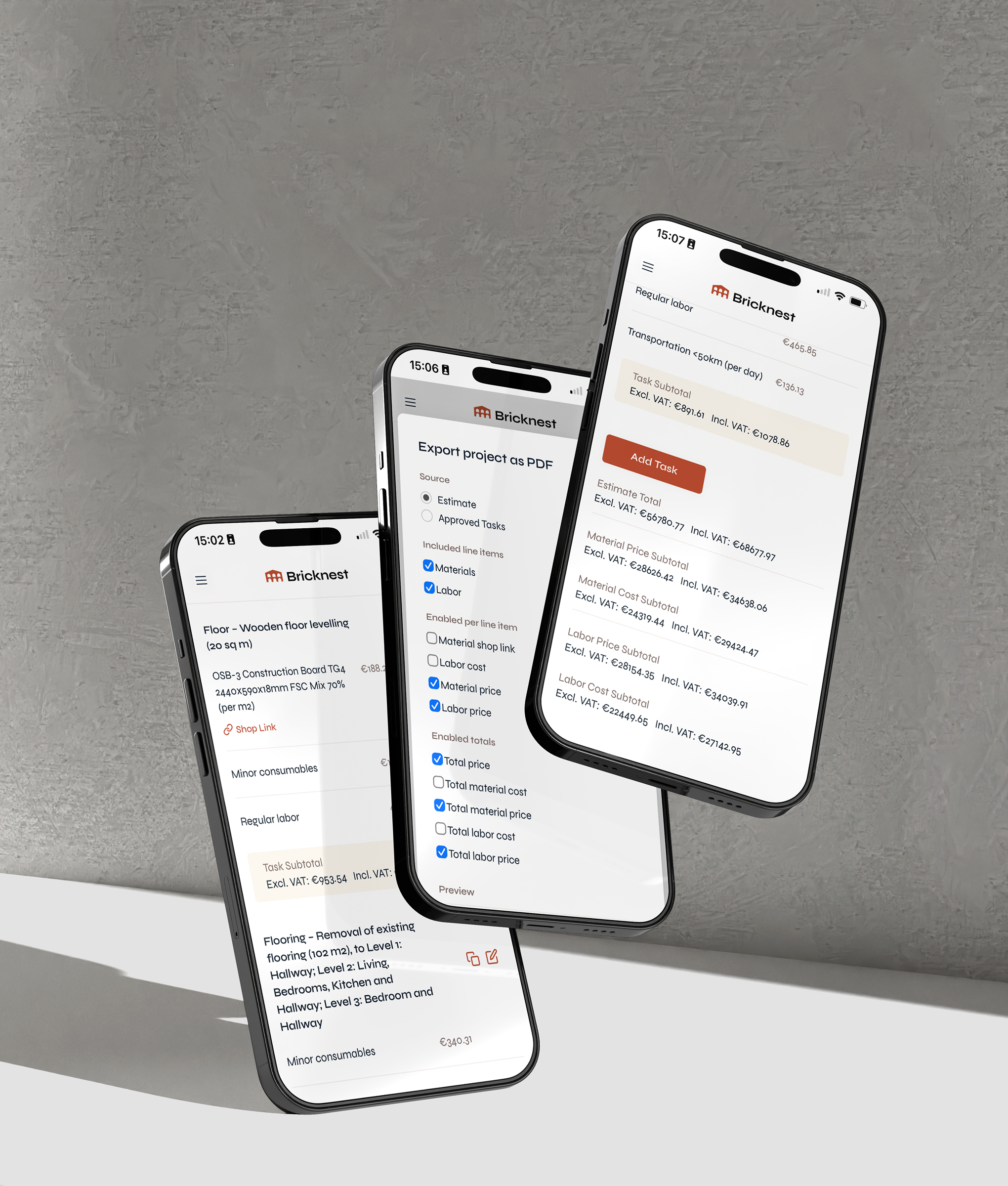 Bricknest is het platform waar aannemers calculeren, offertes uitbrengen én kunnen meedoen aan projecten die wij begeleiden voor opdrachtgevers. Zo vergroot je je pijplijn met warme leads en bespaar je tijd op iedere offerte.